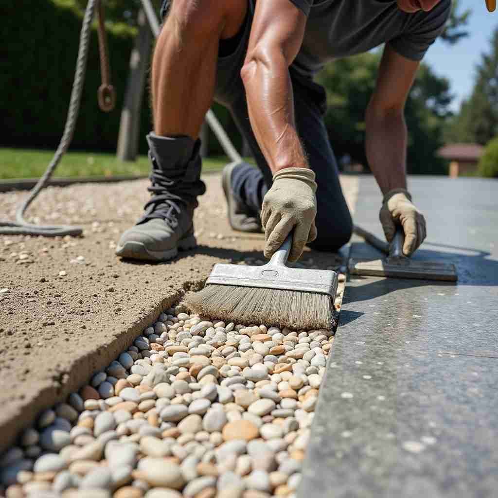 - Site Preparation & Pouring: We start with thorough site clearing and leveling. The concrete is poured with a specially designed mix that includes durable aggregates such as pebbles, stones, or gravel. This ensures strength while allowing the aggregates to show through after finishing.